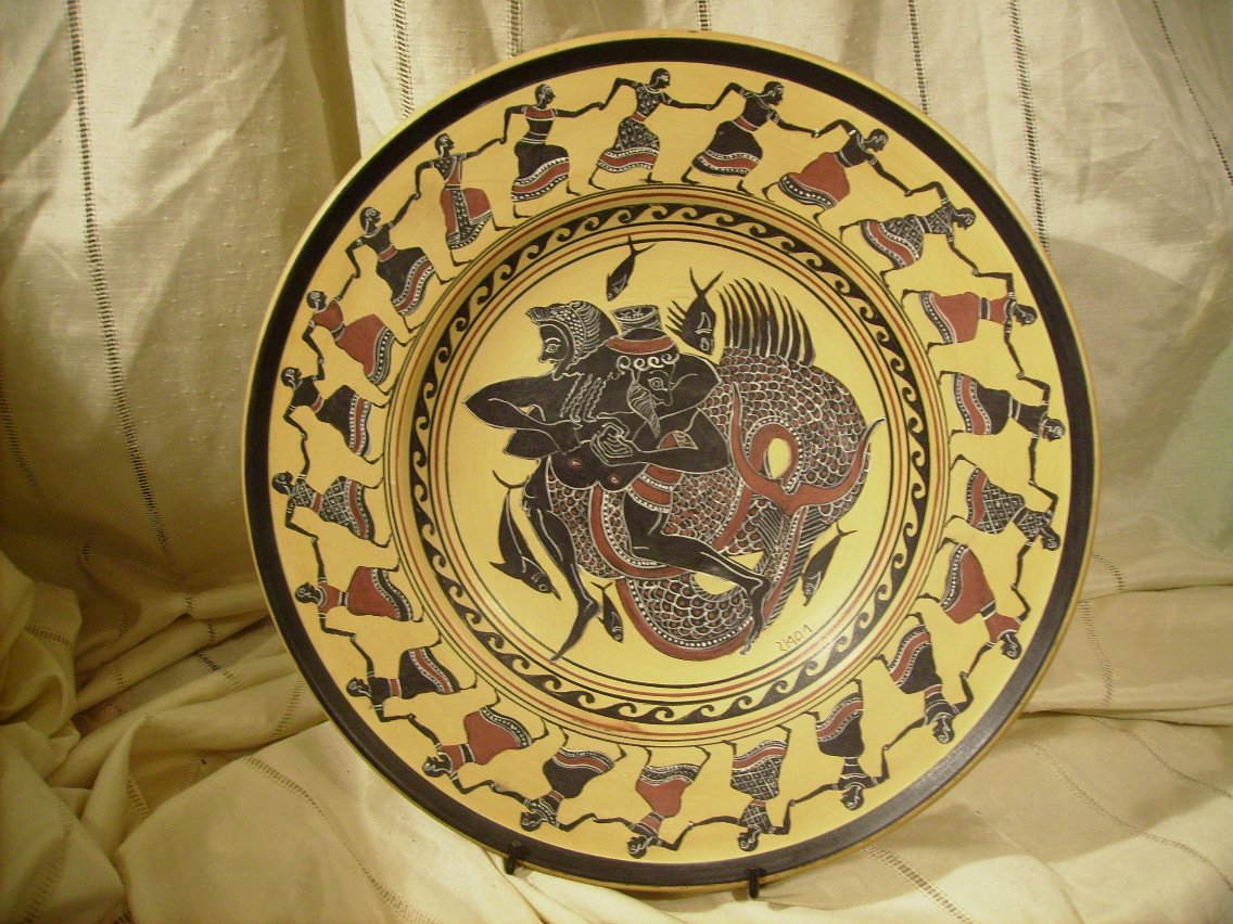 La superfice interna è smaltata, la superfice esterna è decorata con pitture riprese da reperti dell'Etruria centro settentrionale, come nell'esemplare di Tarquinia.